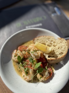 SMAŻONE KREWETKI 8 SZT. / POMIDORKI / CZOSNEK / CEBULA / BIAŁE WINO