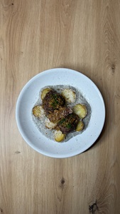 TRUFLOWY KREM Z KALAFIORA / PIECZONE ZIEMNIAKI / KONFITURA Z BOCZKU